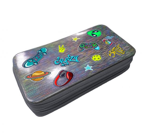 Пенал 2 отделения, 190х110, кожзам Голография, дизайн